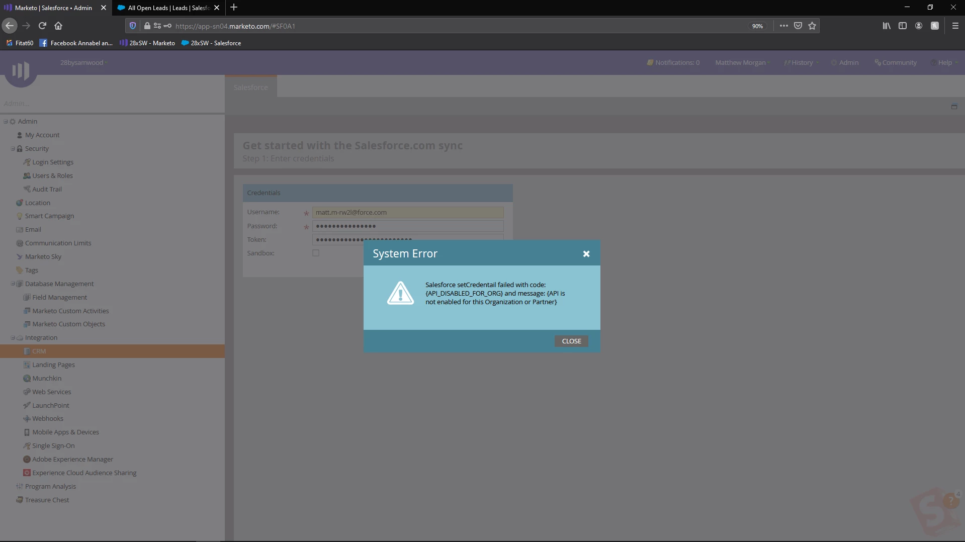 Hello legends, we've been running Marketo WITHOUT a CRM for the last couple of years. I've now purchased Salesforce Professional and am trying to sync the two systems. I've created the right fields to map, reset the security token and all, but I keep getting this error message - can anyone point me in the right direction please?