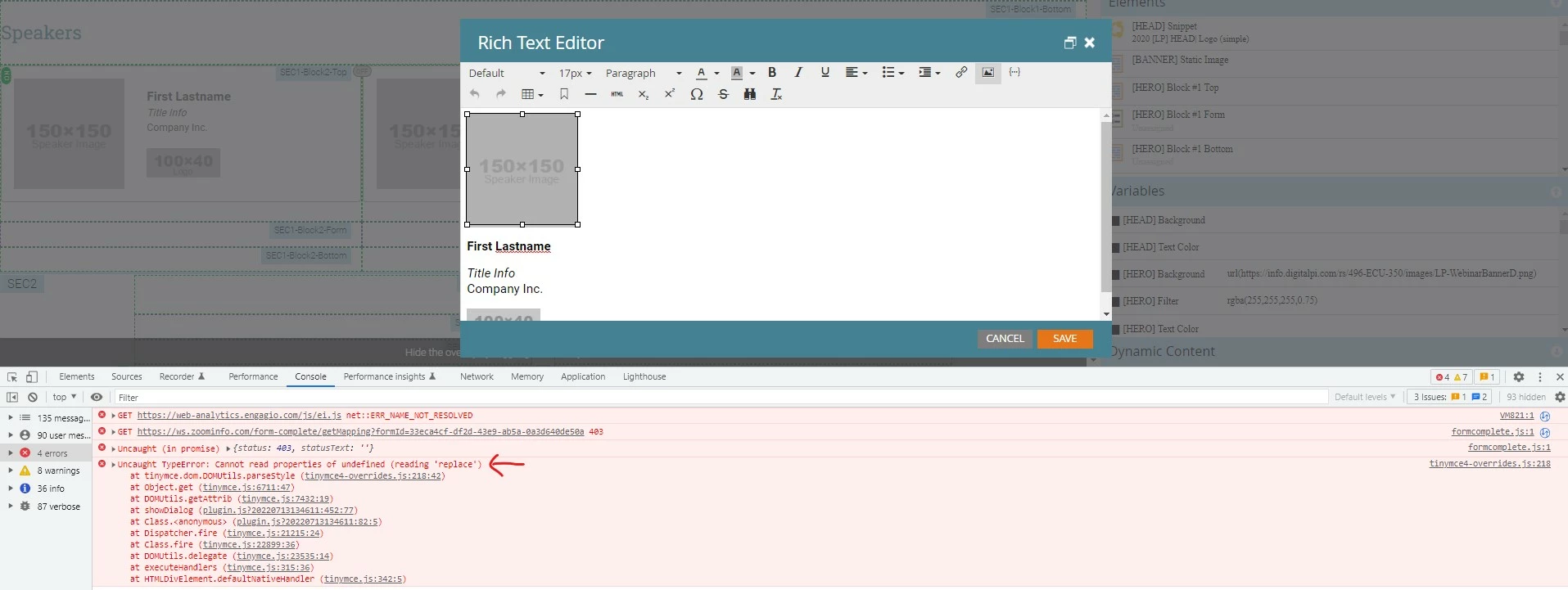Sanity Check: TinyMCE Editor error w/ Insert/Edit Image functionality