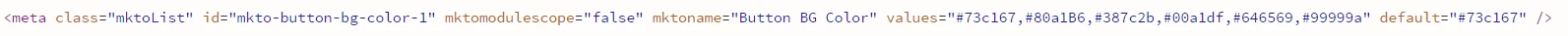 <meta class="mktoList" id="mkto-button-bg-color-1" mktomodulescope="false" mktoname="Button BG Color" values="#73c167,#80a1B6,#387c2b,#00a1df,#646569,#99999a" default="#73c167" />
