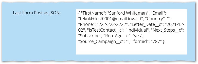 To solve those problems, the code below lets you save all the fields in a form post to a single Textarea field, in JSON or URL-encoded format (or both formats at the same time).