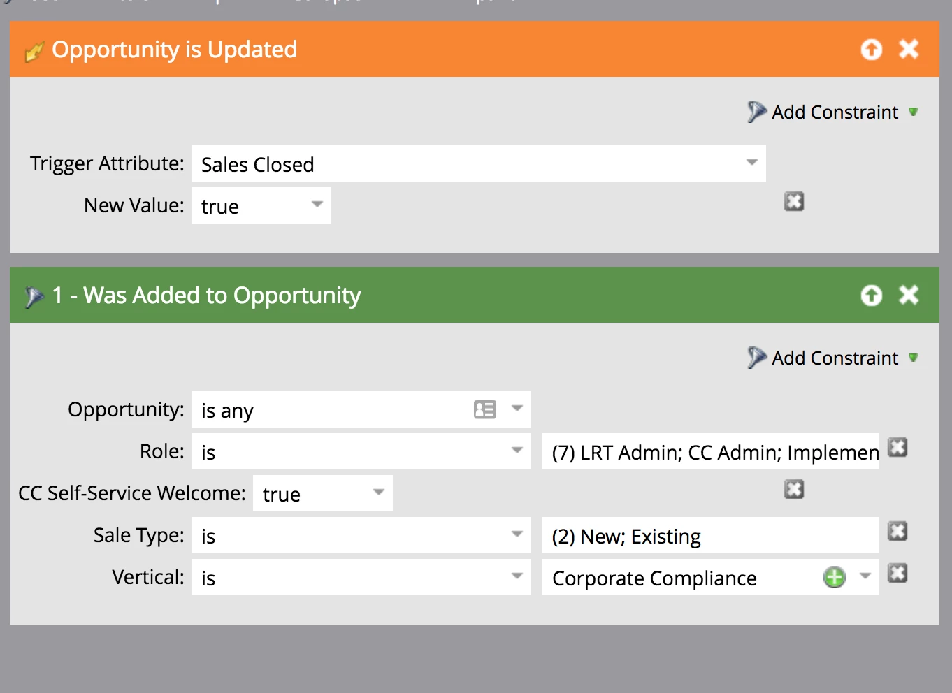 - We have an administrator contact role on each opportunity that acts as the implementation partner. We would like to intro them to their new CSM using an automated process as the volume is high. The roles are (LRT Admin, CC Admin, Implementer, STV Admin, Decision Maker, CC LMS Admin, LRT LMS Admin) for the remaining discussion purposes I will refer to them as "Implementers".
