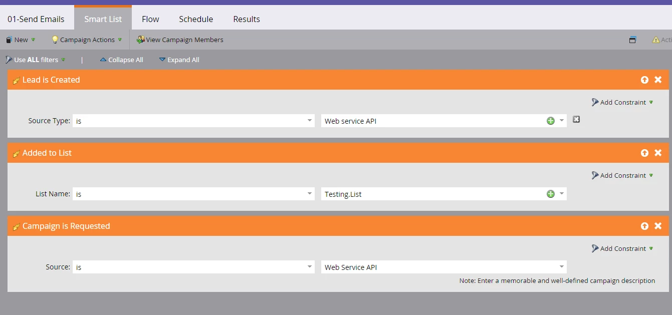 I tried defining the attached "Smart List.png", but it didn't work.