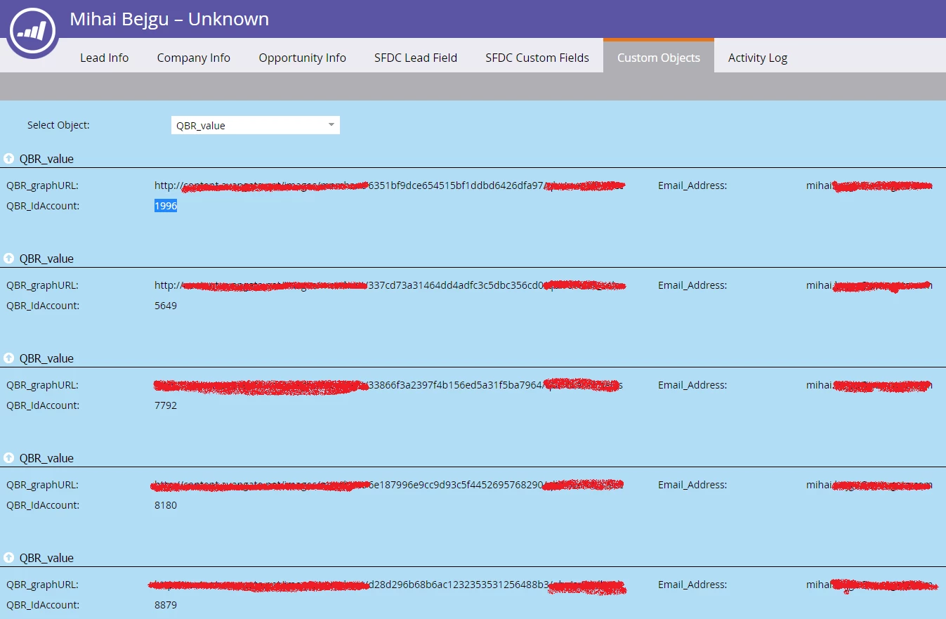 Looking at the "qbrprint.png", how can I send to Mihai Bejgu (only one email address associated), 5 emails individual emails, for each QBR_Id Acount, that will contain it's associated QBR_graphURL?