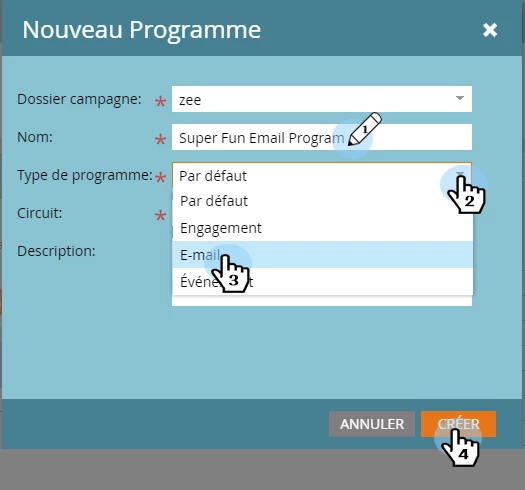 Créer (Create) un programme d'e-mailing