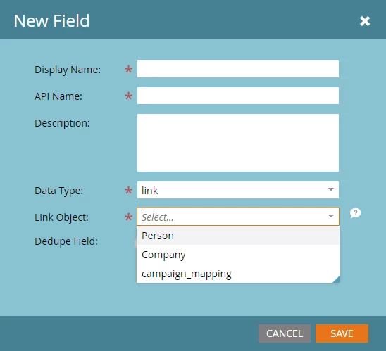 - Create a 'Company ID' field, set is as link field and link it to the 'Company ID' field on the Company Object