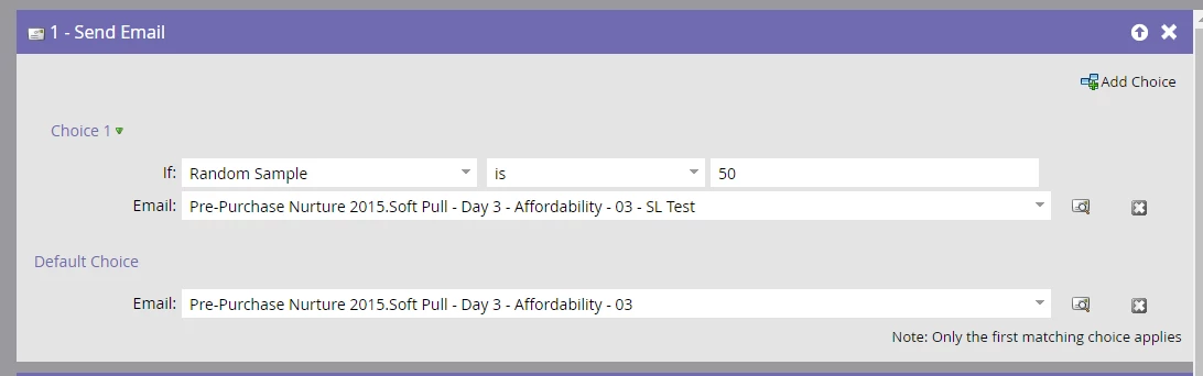 After setting up A/B tests using a random 50/50 split, the email shows up within email insights as a program ID when filtering by the smart campaign it exists under, but you cannot search for the email itself (i.e. it doesn't exist when filtering by email send).