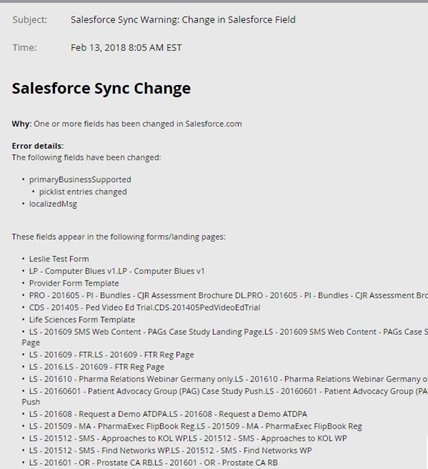 SFDC Sync Change Error
