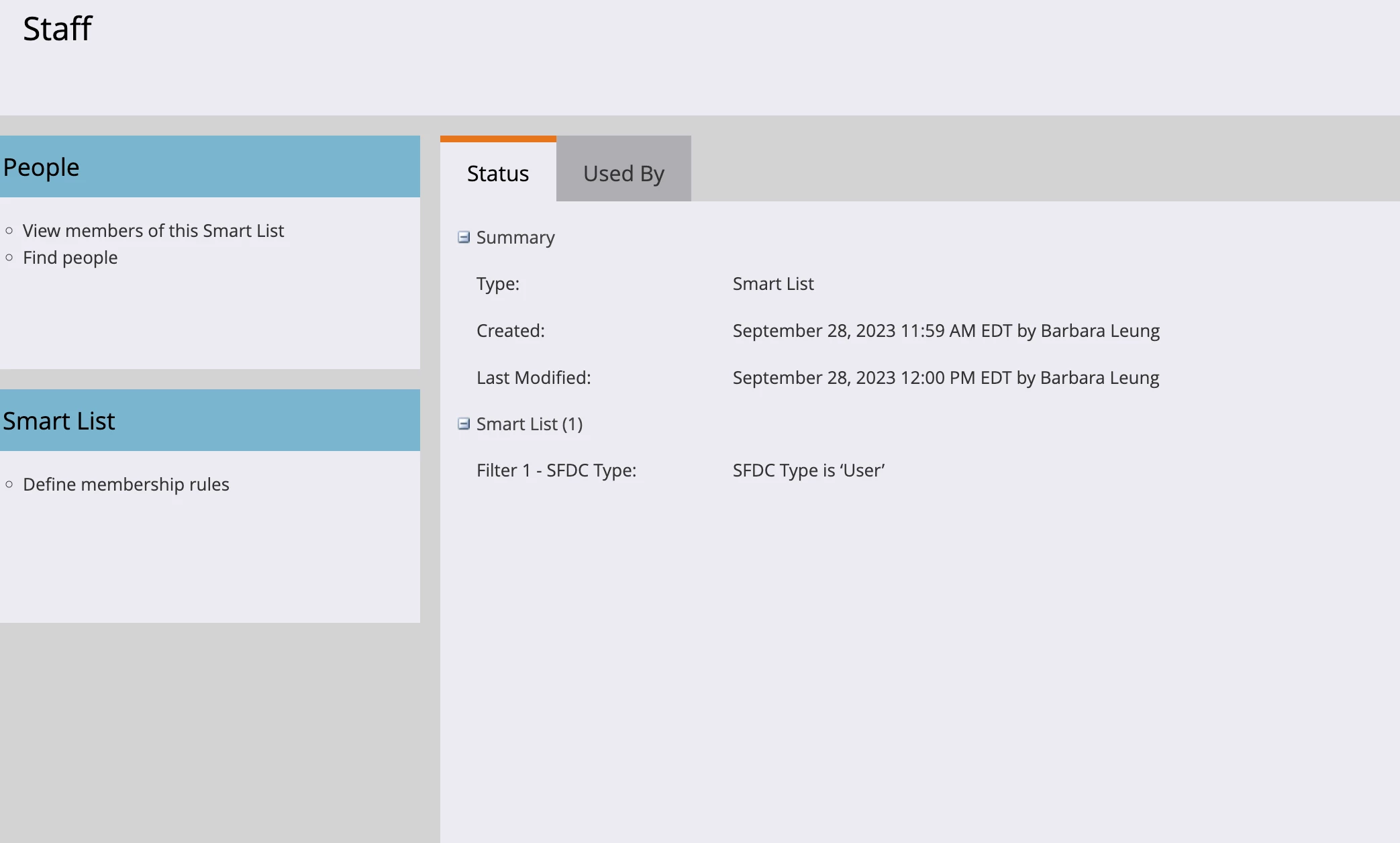 I've enabled the filter for a smart list as SFDC Type is 'User' after activating View All Users in the Salesforce permissions for the Marketo Sync profile. The option for 'User' now appears; however, when I add this filter, no people are being pulled in.