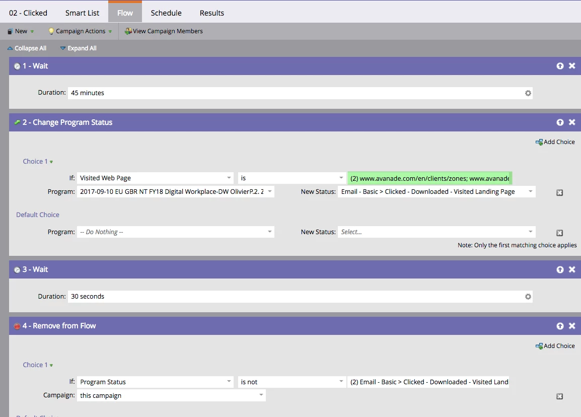 One other bit of advice is to also include a "remove from flow" flow step - especially if you have additional processing that takes place in the smart campaign (e.g., setting last touch channel, date, etc. values) - for those that don't qualify for the "visited landing page" choice prior.