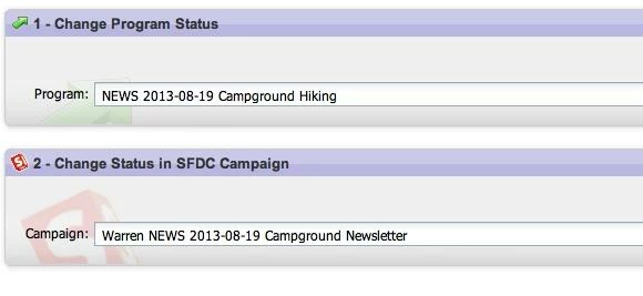Correct. So long as your program "NEWS 2013-08-19 Campground Hiking" is synced to the same SFDC campaign code that you currently reference in that flow step, you'll be set.