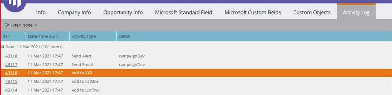 once we changed users in production we tested the campaign using the same Token but we found different results, we obtained this results for the Activity Log of the user :