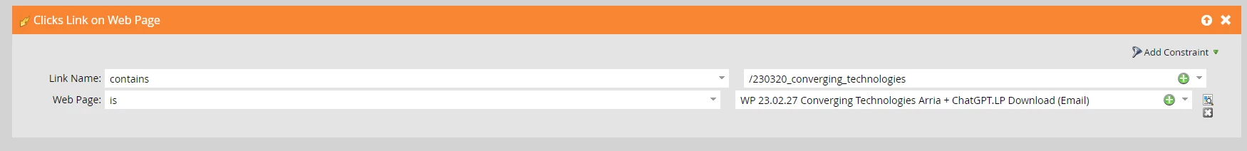 So my Smart List trigger is incredibly simple, if the user clicks on a link containing "/230320_converging_technologies" ON that specific page, they should be added to the campaign and a "Thank You" email should be sent.