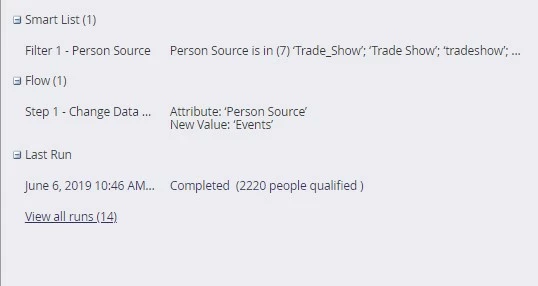 The run history show it's completed and 2200 people qualified. However, when I navigate the result tab, it is empty. And people who qualified for the smart campaign were not impacted. (their person source is still not "Events"). There is no history related to this campaign in their activity log.