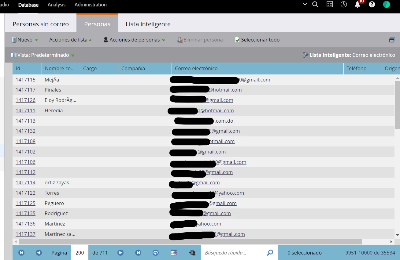 When I create a smart list or in the same smart campaign I put the "Email" with the attribute "It is empty" and I go to review the pages of people I see that if it brings people who do not actually have an email. But when I go to the next pages, I see that it brings me people who do have email. I don't know if it could be an error in the instance or in the list. But in the instance we have, the only field that this procedure for email is called "Email" which is the field that I bring to validate that the emails are not empty.