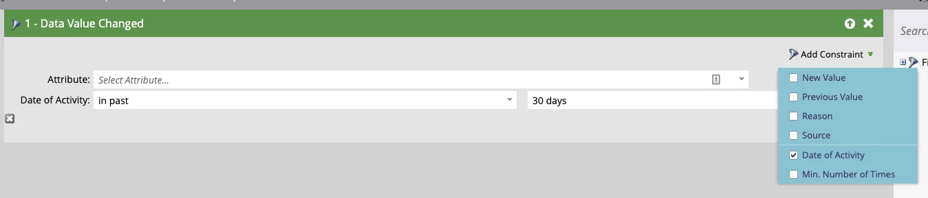 Constraints. Certain filters (mainly activity/inactivity filters) allow you to get even more granular using constraints, which are extra criteria that allow you to help narrow your search even further. Constraints can be found in the top right corner of the filter, and you will set them up the same way that you set up any other filter.