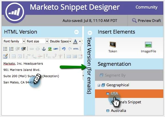 My text version of an email is missing the snippet I added. How do I make the snippet appear in the text version of the email?