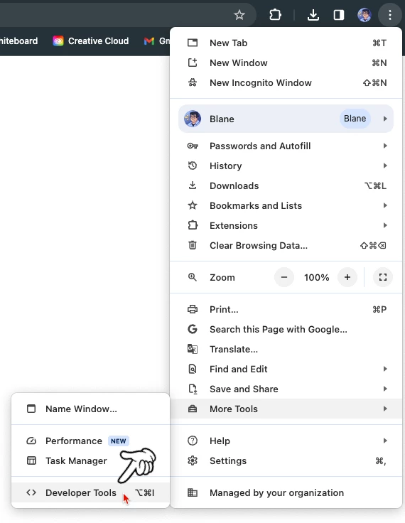 We can easily test that the code is working by opening our page in the a browser and open the developer tools. The what!? ... just press F12 on your keyboard. (This works in most browsers, but you may need to look for it in the menues.). I like to use Chrome, which is easier than drilling down like this.