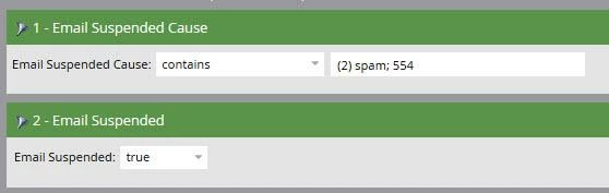 but shouldn't the email suspended = "true" and a cause contains "spam" or code "554" be included in this?