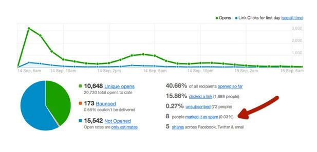 I used Emailabs a long long time ago and they had a similar dashboard that shows the unique opens, and those who marked the email spam.