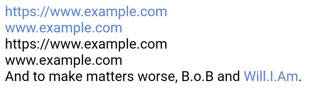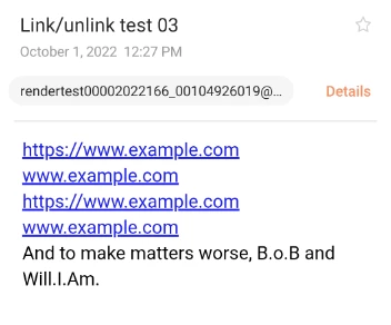 Only one offender, Samsung Mail, still insists on linking, having stripped the WJs for no good reason (they’re perfectly valid in HTML in general):