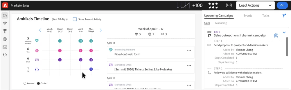 - Seller can also see marketing events planned for their prospects in the next 90 days along with event invitation status