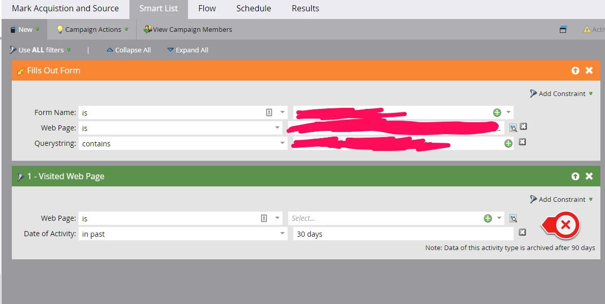 Targeting Url String For Webpage Form Fill - "Contains" operator on Filled out Form under webpage constraint doesn't work