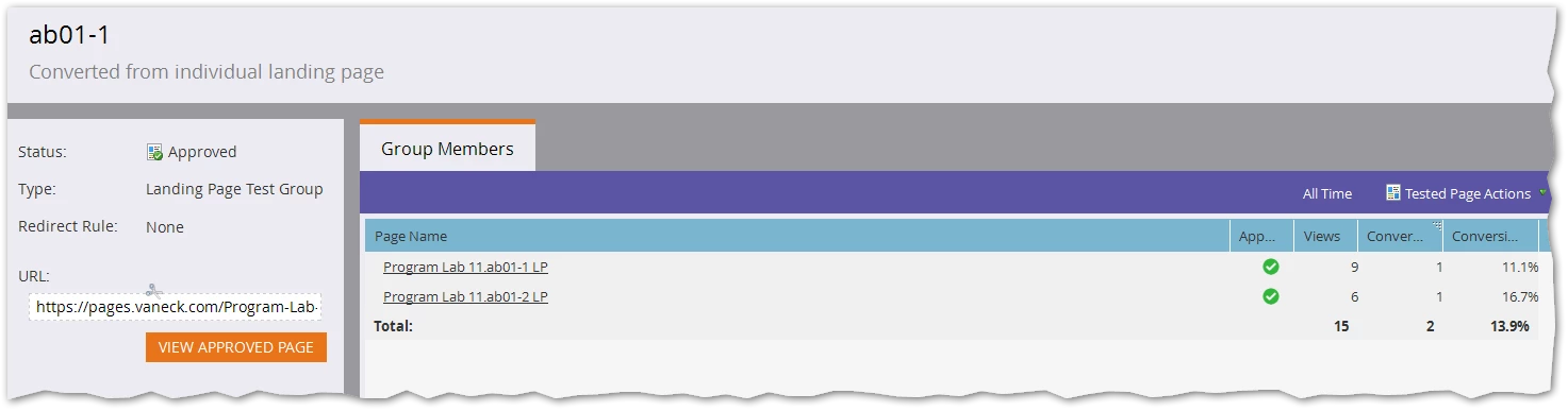 Because we reuse the same form on multiple pages, I use "fills out any form on a specific landing page" to trigger flow steps like updating lead source and sending out alerts. This worked fine with a single landing page per program, but once we converted that landing page into a test group, the trigger no longer fires.