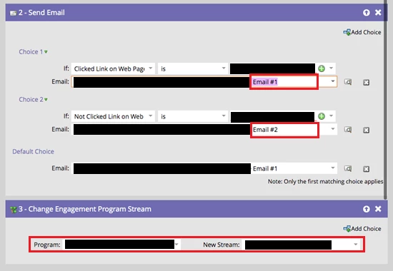 - In the above Stream, if you check Default Programs #1 and #2, they use the same emails as previously shown Smart Campaigns.