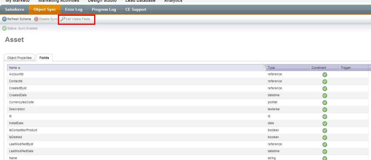 However, the Edit visible fields option is only availble when the custom object is not being used in any smart lists or smart campaigns (Has_custom_object filter/trigger).