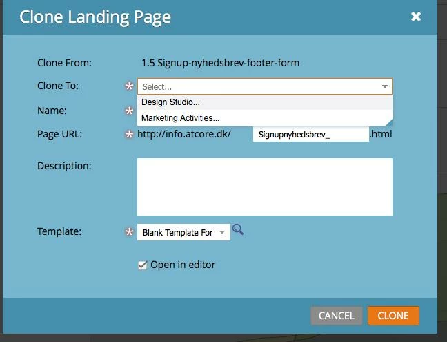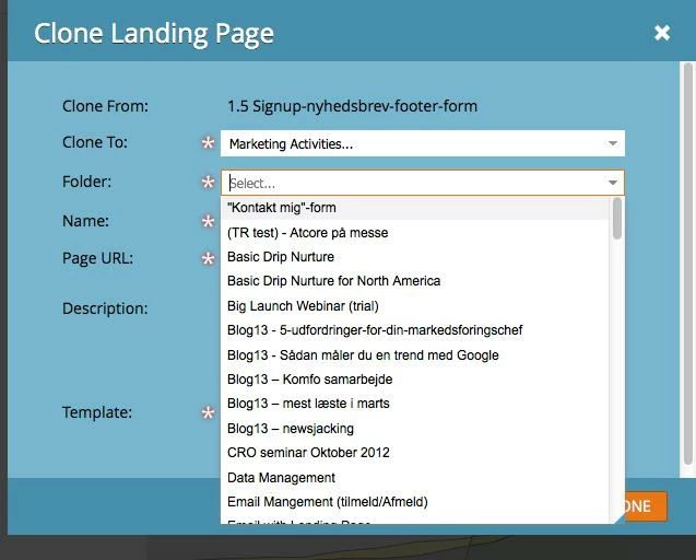 - I press clone on a Landing page i create