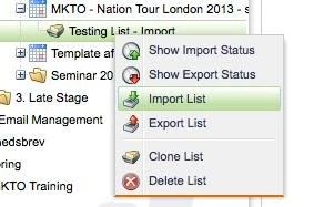 - I Right Click on the list i created and press import. (Fig.5)