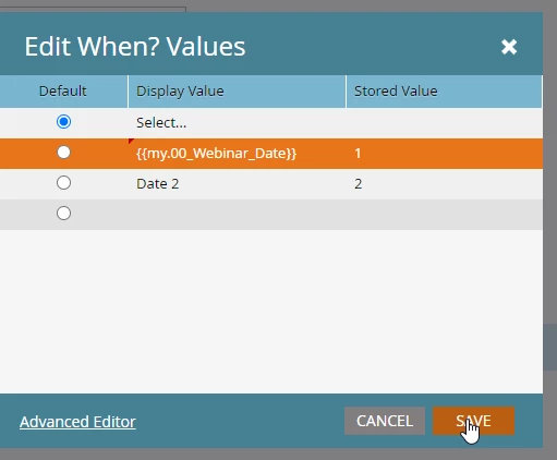 The token I have in my program is {{my.00_Webinar_Date}}. When I insert that, my editor crashes.