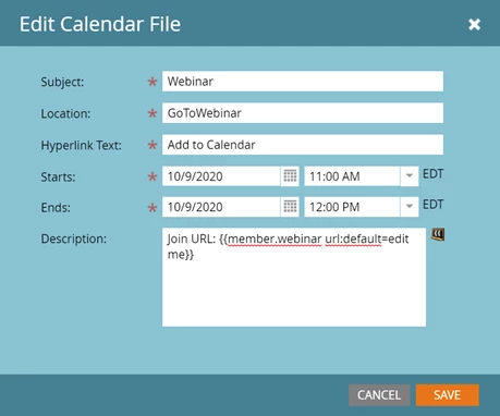 Though the program token {{member.webinar url:default=edit me}} is populating correctly in the body of our program emails, it is not populating (showing up blank) in our ics token.