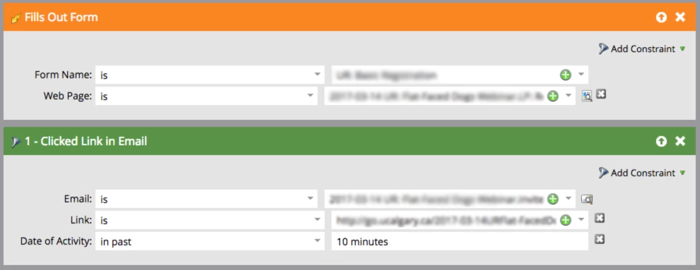 The logic I am using is that a form fill equals a conversion. Since people can fill out forms anywhere, I know that just using the logic "fills out any form" equals status update/program conversion will not give me accurate results. I want to know that the form filled out is the one specifically referenced in my email.