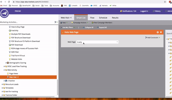 I'm trying to track # times a lead visits a website by creating a smart campaign that triggers the following whenever someone Visits Web Page = Any.