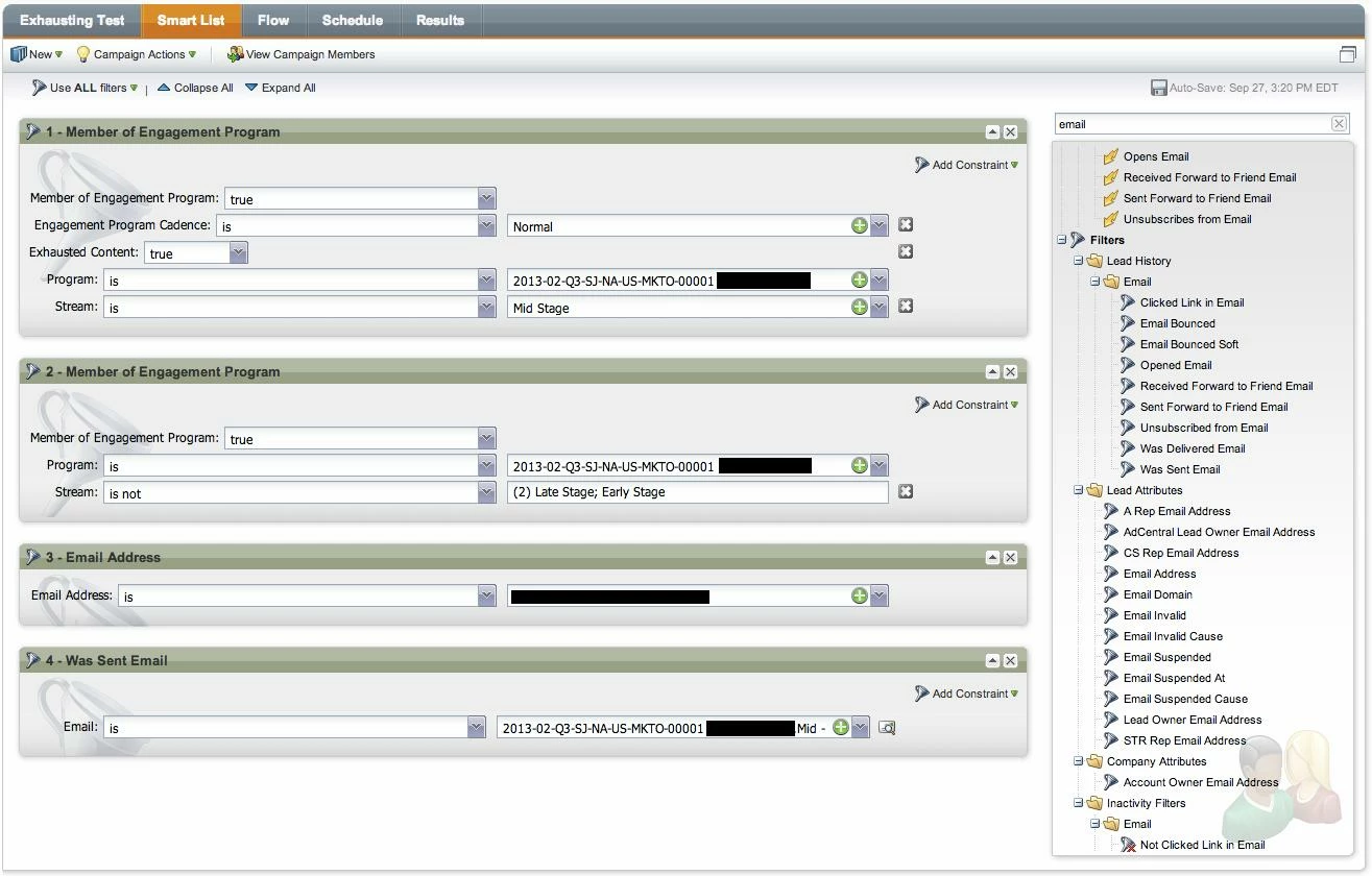 As a test I created a campaign targeting 1 member of a stream (screenshot below). Program goal is to move contacts w/ expired content from mid to late stage.  As configured in the screenshot, the Schedule tab says the campaign will affect "0" contacts. If I remove the last evaluation step in this screenshot (was sent email), the Schedule tab says the campaign will affect "1" contact. If I run the campaign this contact is, in fact, moved to the late stage despite them not receiveing all content from their current (mid) stage.