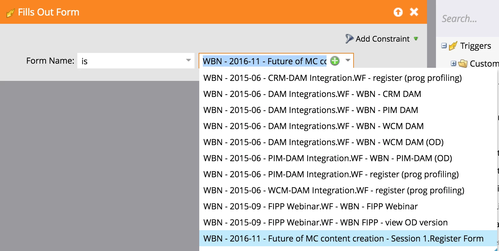 Trigger based on Fills out Form: central form + Constraint: Webpage doesn't always fire