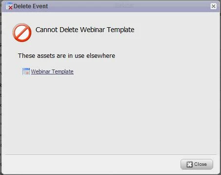 Has anyone run into this issue before? It's saying that it cannot delete the event because the asset is in use within itself. I have deleted everything from the event except the event itself.