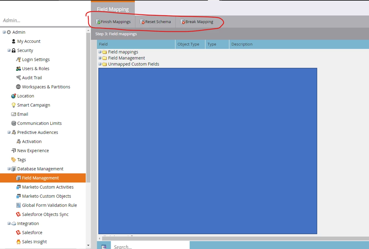 However, in Field Management, I am only able to modify the mapping and the "Field Actions" drop-down is not visible. Is this only visible once I have already done the Salesforce sync?