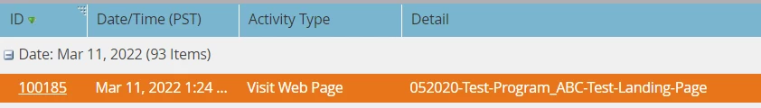 Sometimes it reverences the "visit web page" with the URL. Sometimes with the landing pages name and its program.