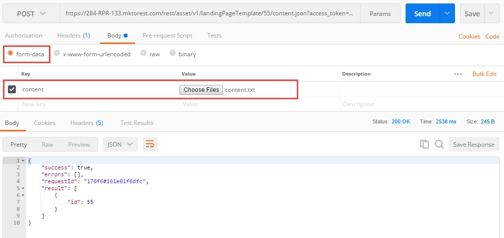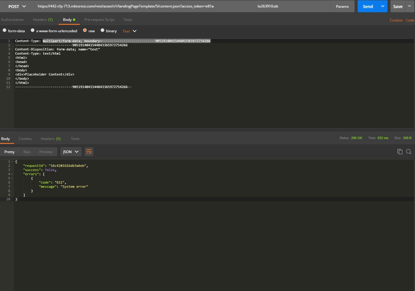 I'm trying to update landing page content using the same body as the one provided on the website here: