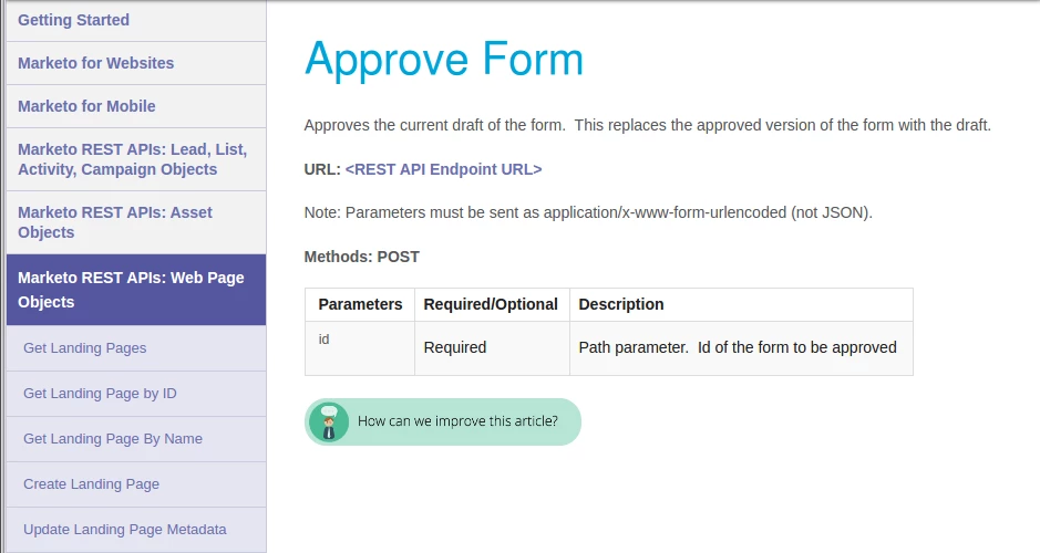 I am trying to access the recently released API endpoints for Forms and Landing Pages but it seems that the documentation is not yet complete. I am needing the URL's for the following: