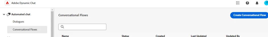 Creating a Conversational Flow is easy. To get started, log into your Adobe Dynamic Chat account and click on the "Conversational Flows" tab. Then, click on the "Create new Conversational Flow" button.