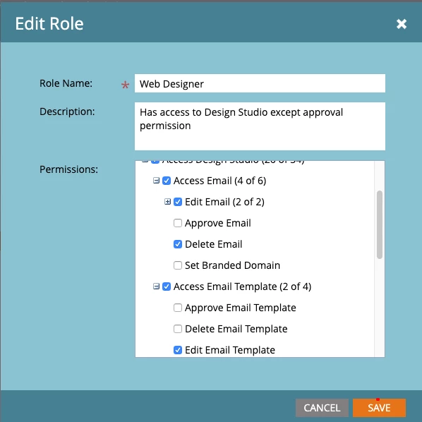 what user role will allow someone access to design emails but not be able to approve or send emails?