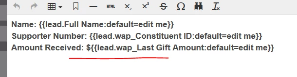 In the WYSIWYG do I simply type ${esc.d}{{lead.Gift Amount}} ? What command is {esc.d}?