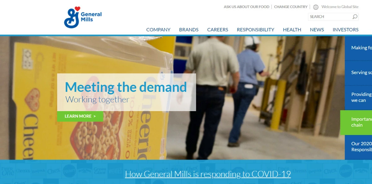 The company needs two different domain names here. One for General Mills itself for it's B2B interactions with suppliers, employees, shareholders, and media relations at www.GeneralMills.com,
