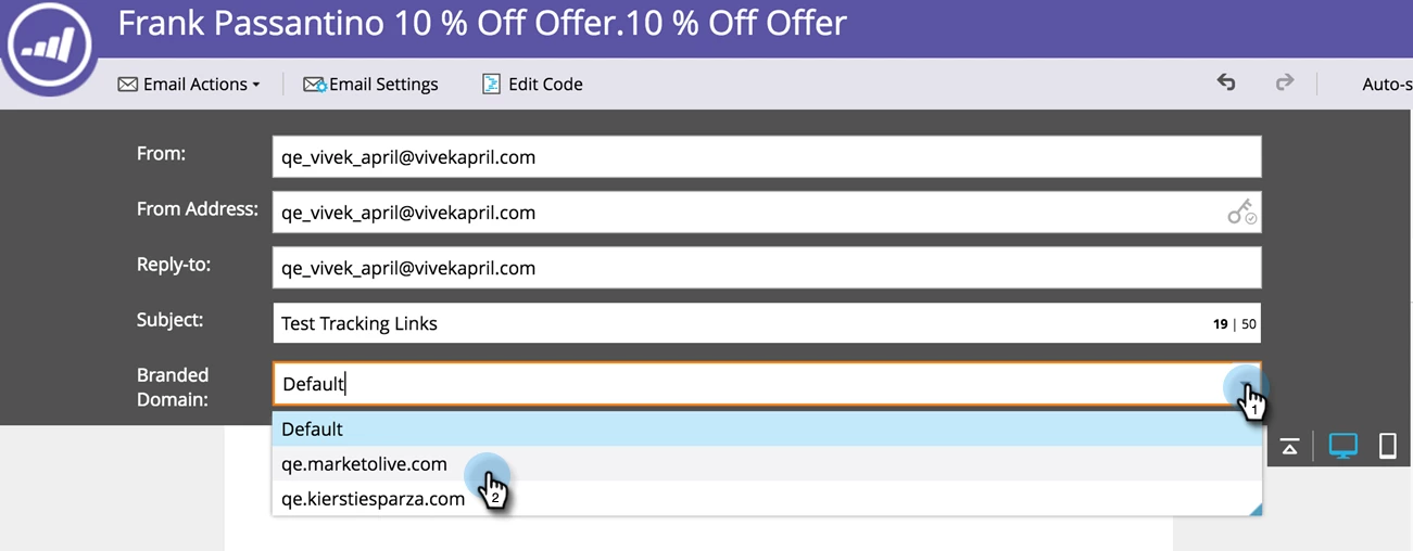 It's not the sexiest product feature, but if you're an enterprise that has more than one brand it's likely you'll want to send an email from those different domain names. More specifically, when you create an email in Marketo the software automatically goes through all of the links, adds the subdomain name that you originally pointed to MktoMail.com when you configured your primary domain name. to work with Marketo, along with a ?mkto=***** query string parameter. This is what allows the software to track which audience members are clicking on links for your Email Performance Reports or Link Performance Reports.