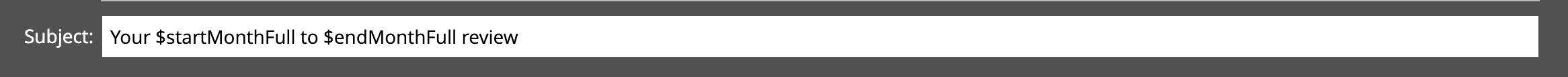 For example, I have a token at the top of my template that defines a number of variables that are used throughout the message body. These pull from a custom object so I define them all at the top of the message so I'm not hitting the object repeatedly throughout the message and it helps keeps things neat. In this example, I have a month field that gets populated with the short name for the month as a string. I am using a map to get the full name of the months and writing them to $startMonthFull and $endMonthFull.