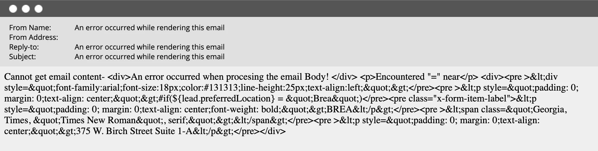 I dropped the token in the email and when I go to preview the email I receive this message. What is wrong here?
