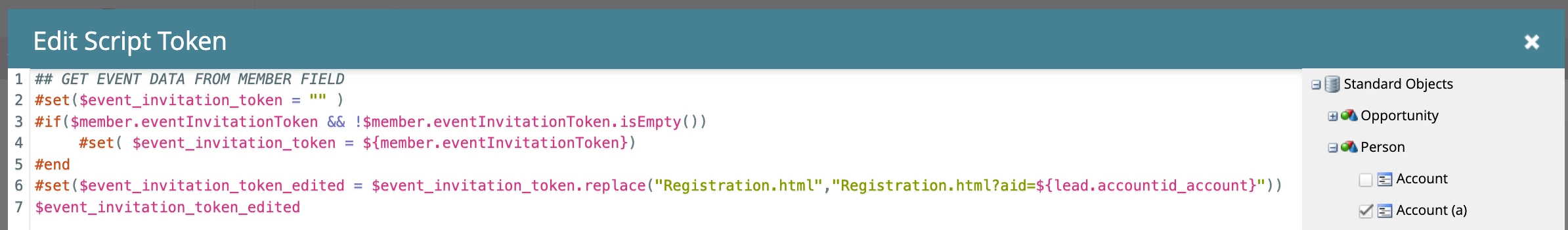 #set($event_invitation_token_edited = $event_invitation_token.replace("Registration.html","Registration.html?aid=${lead.accountid_account}"))